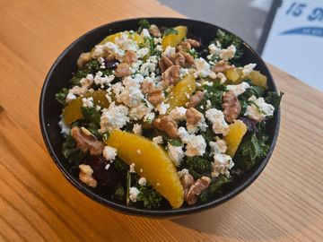 Warm roasted butternut squash, maple-roasted beets, sautéed greens, Ontario apples, and toasted walnuts over farro. Served with herb yogurt dressing.
