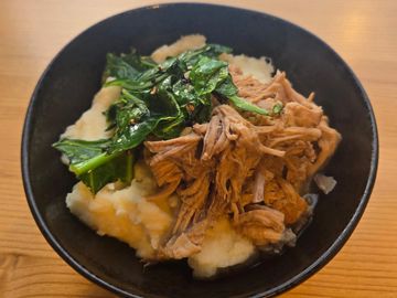 Ontario pork shoulder slow-braised in a local dark ale with onions, bay, and a touch of apple butter. Served with parsnip-potato mash and winter greens.
