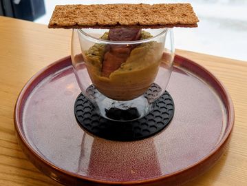 Toasted sourdough topped w. parsnip, pear compote, thyme, & local honey.